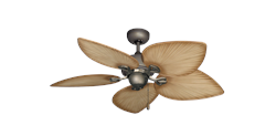 42 inch Bombay Tropical Ceiling Fan - Antique Bronze Finish/Tan Leaf Blades